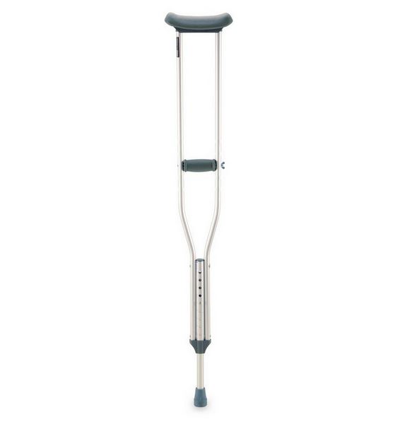 Duralová podpažní berle, velmi lehká, výškově nastavitelná, s nosností 100 kg.