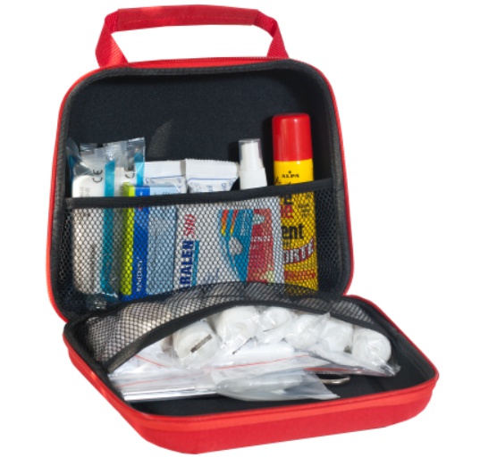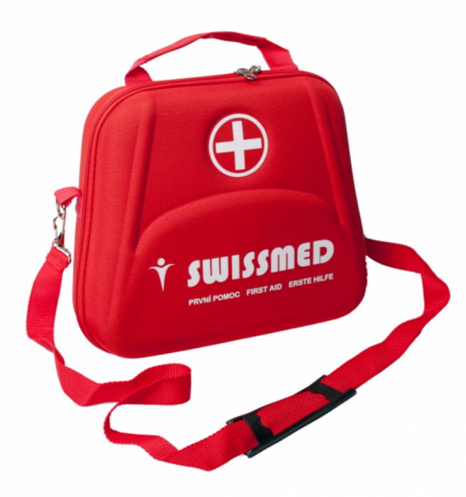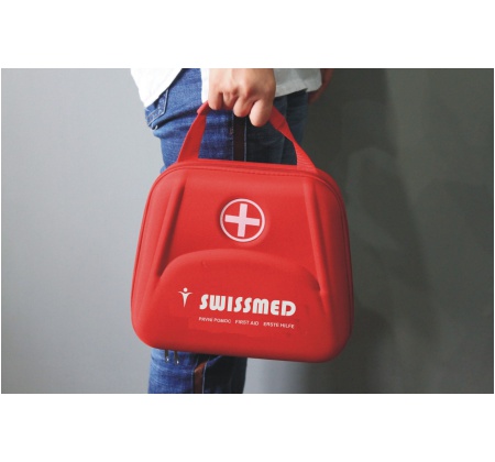 Lékárnička v podobě měkkého kufříku z moderního materiálu EVA, který je potažen textilem.