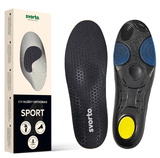 Sport OrthoMax – vložky s podporou podélné i příčné klenby, gelovými polštářky a PORON® tlumením pro intenzivní zátěž.