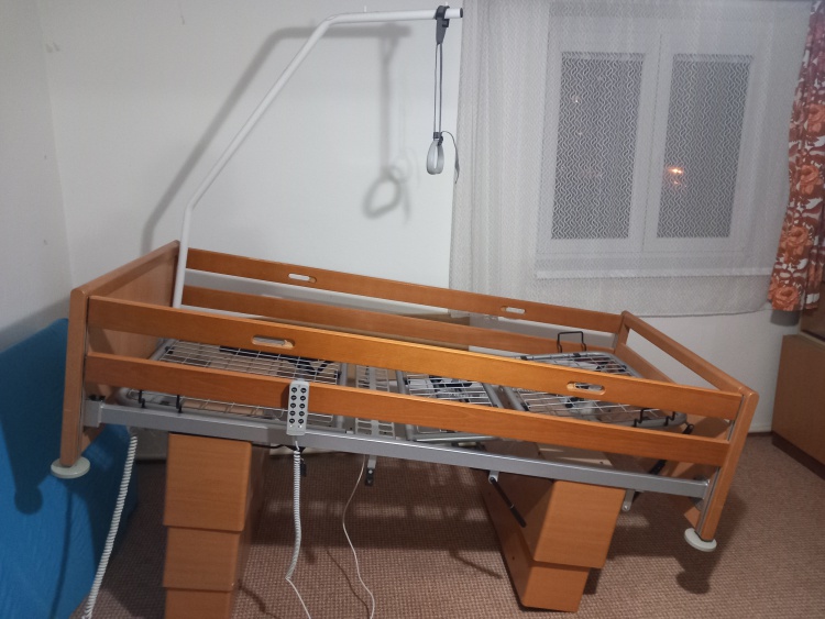 Prodám polohovací lůžko s elektrickým ovládáním, lamelovým roštem, s hrazdou, včetně matrace.... detail inzerátu